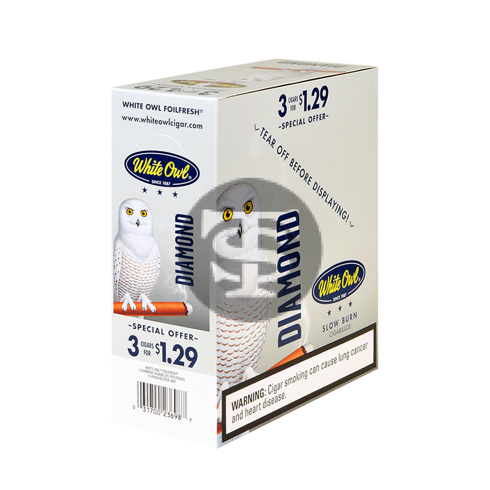 White Owl Cigarillos 1.29 Pre Priced 15 Packs of 3 Cigars Diamond
